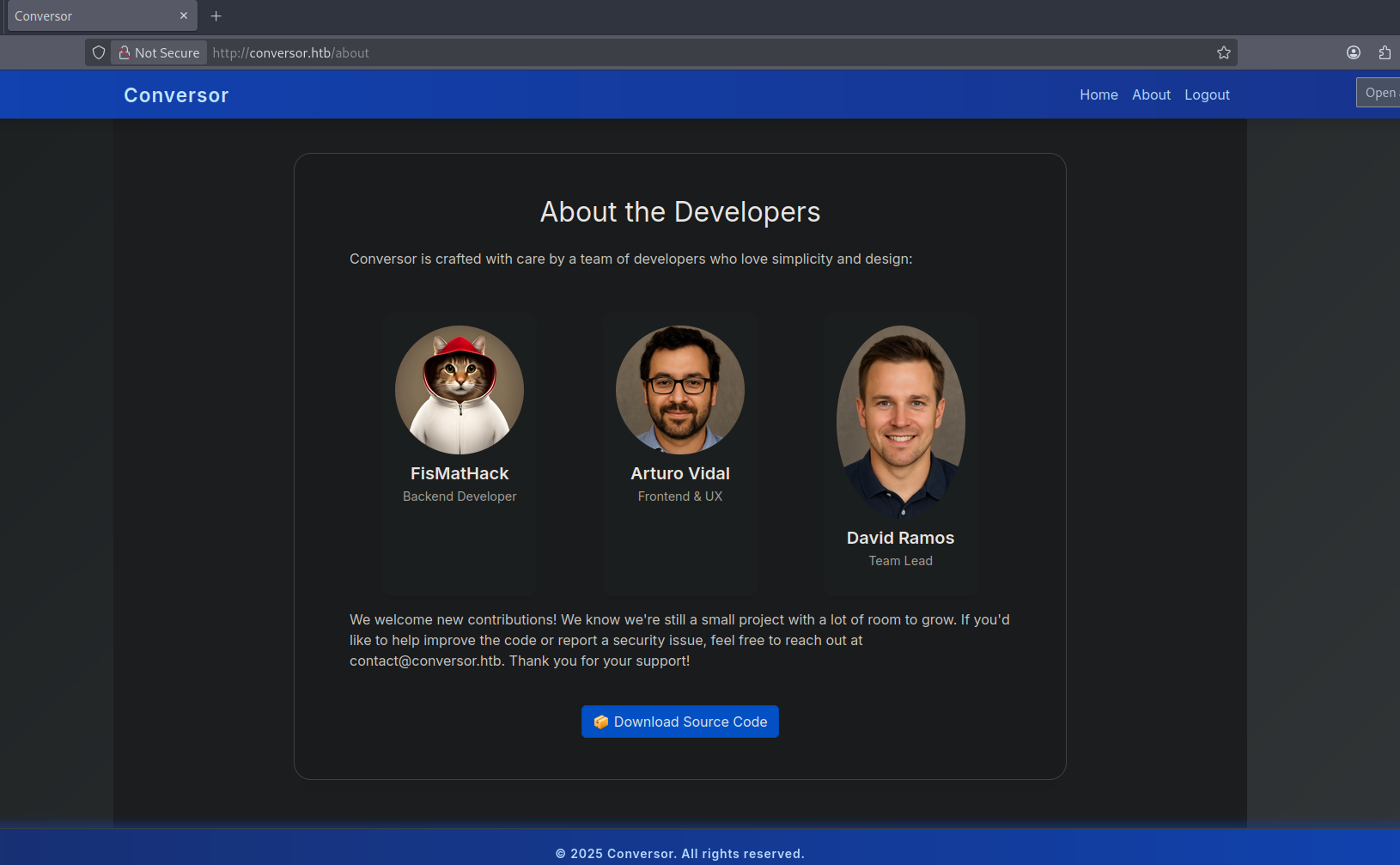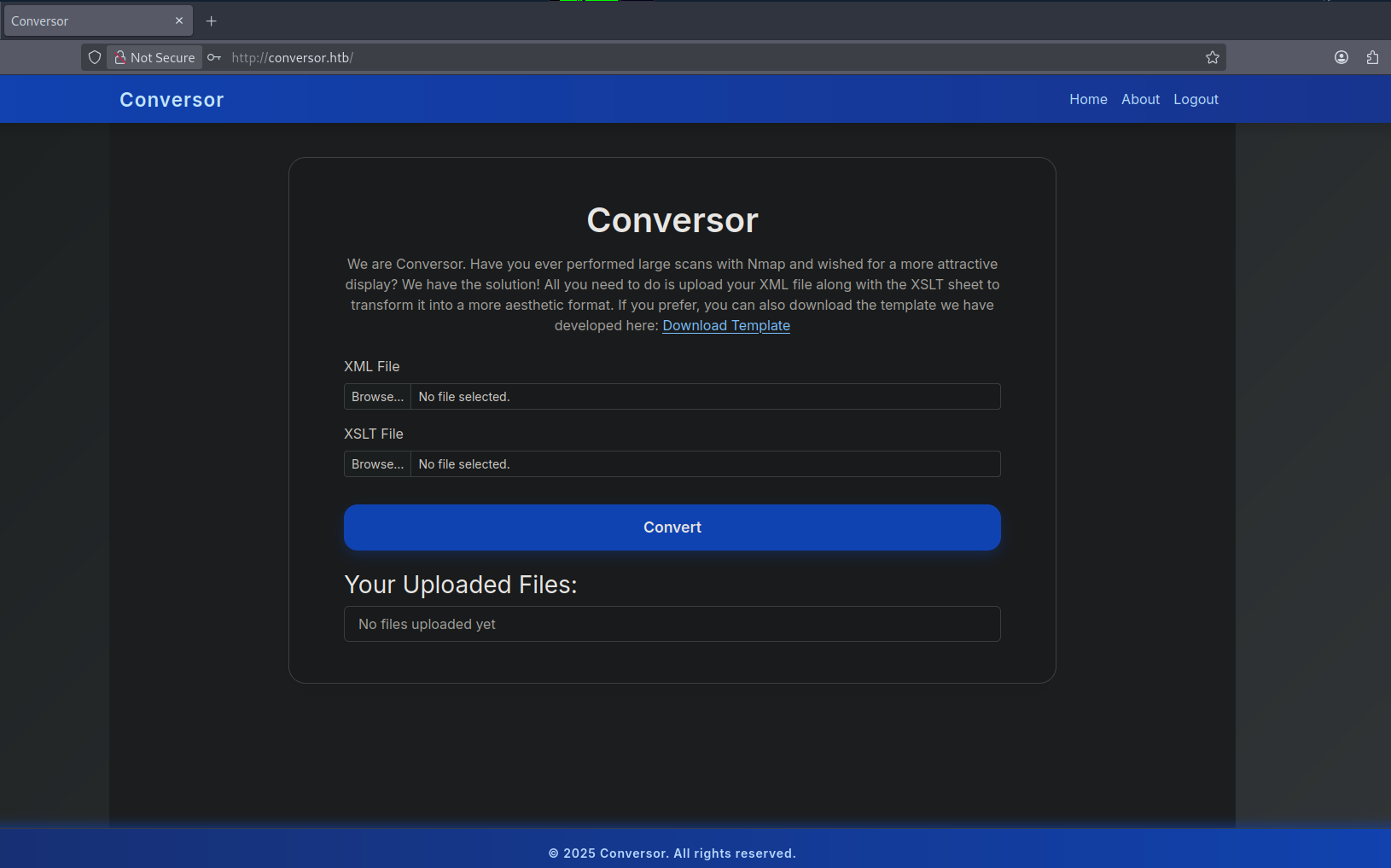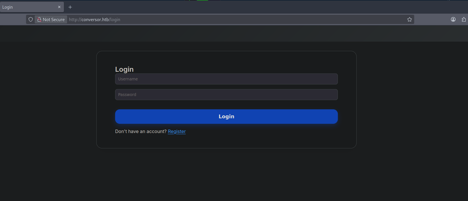 From the nmap scan we can see that the website is trying to redirect us to conversor.htb we can add this entry into our host file to access the page.