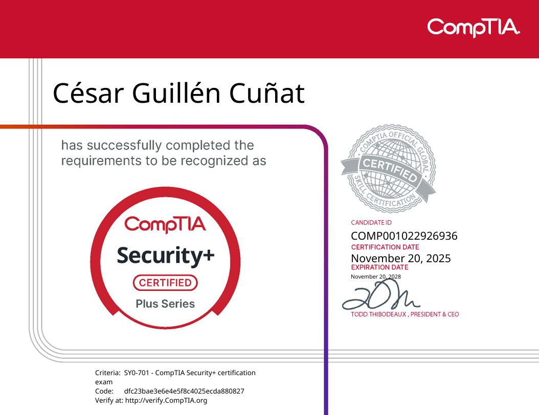 Yesterday I achieved my CompTIA Security+ certification, while it was easy compared to the CPTS exam, I think I needed this certification, since for some reason I decided to jump into cybersecurity by doing penetration tests, which is definitely not recommended and I had some knowledge gaps in some basic areas. The cert tackles basic concepts about cybersecurity, most of which I knew already thanks to doing a harder certification from the get go, but I would say it was definitely worth. It gave me a chance to write notes about these concepts and build a solid database that I can now always go back to if I ever forget a term or tool. Overall I think it took just a bit over a month to cover all the topics. I think the exam was a bit harder than I expected but I ended up passing with a score of 802/900.