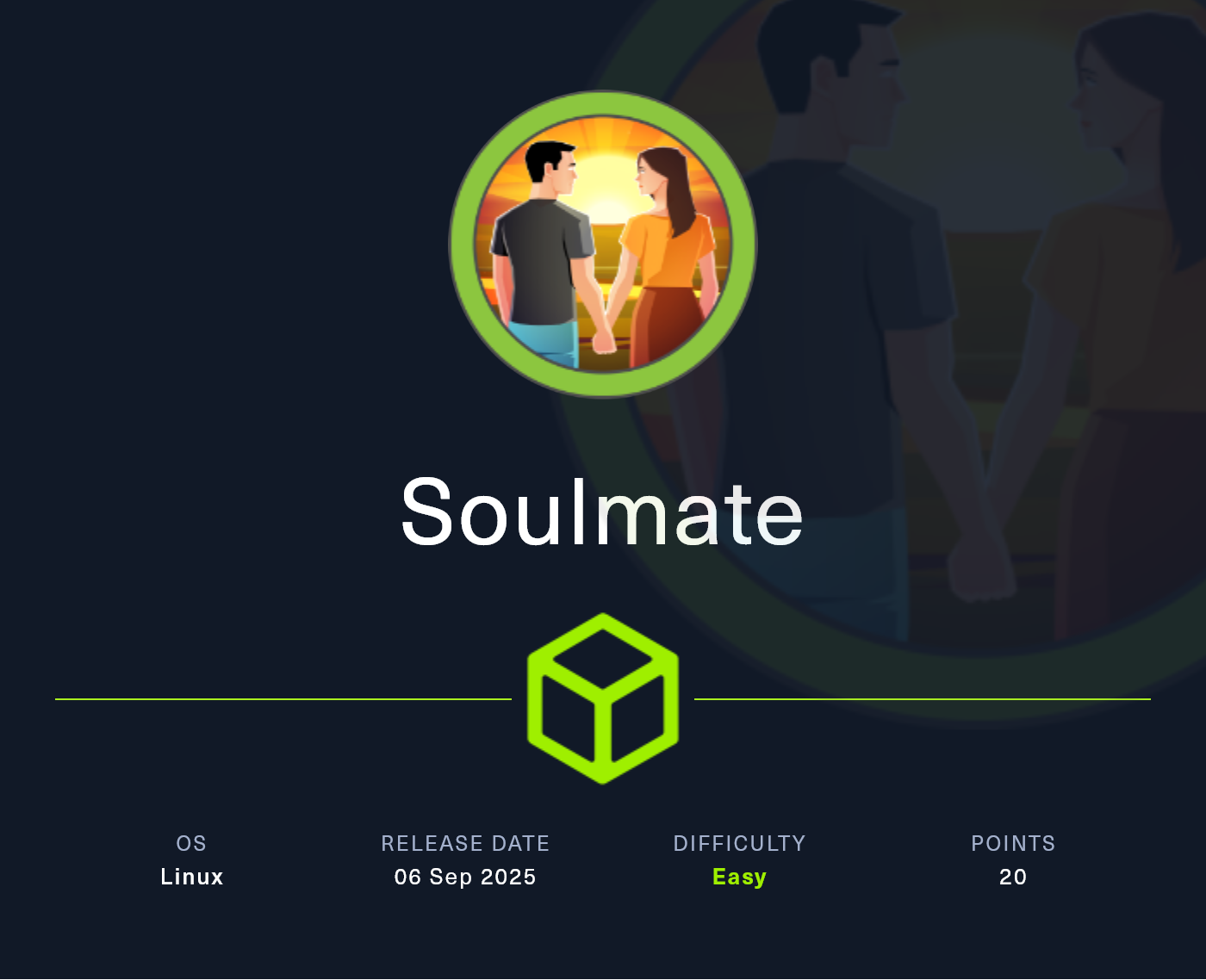 Soulmate is an easy Linux machine which starts off by showing a dating site which lets us create a user, this box has some rabbit holes which is a bit annoying. After performing VHOST enumeration we find the ftp subdomain which hosts a CrushFTP instance running. Using a newly released CVE we are able to exploit this site to gain admin access which allows us to upload a PHP shell on the webroot. After gaining RCE we can see that running processes show the command that was used to start them which leaks a sensitive file containing ben`s credentials. Process enumeration also shows that an Erlang shell is running on port 2222. After logging in with ben using ssh we are logged in as the root user.