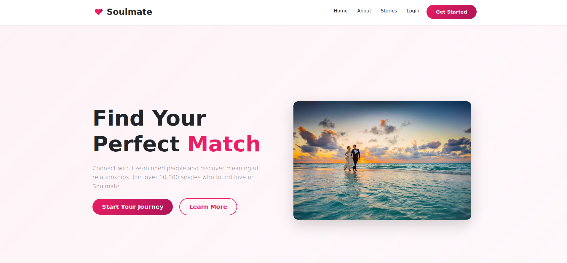 We can see only two tcp ports open, 22 which corresponds to SSH and 80 which maps to HTTP. Going over to the website on our browser reveals that it is trying to redirect us to http://soulmate.htb since our DNS does not know this entry we should add it manually to /etc/hosts. After this step we can finally enumerate the website which seems like a simple dating site.